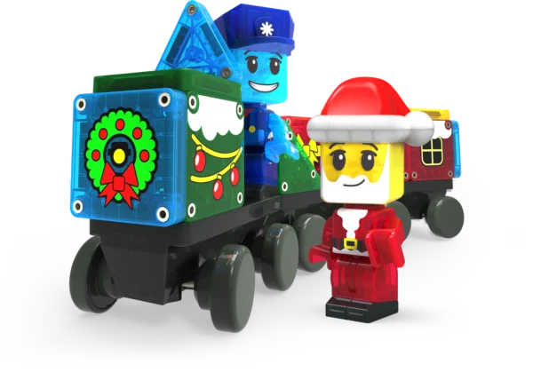 34 nieuwe feestelijke MAGNA-TILES, inclusief een Kerstman- en Conducteur-figuur, en een microChassis.